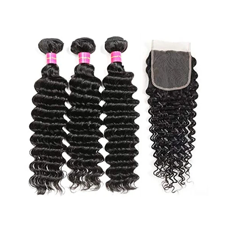 Rosabeauty 30 32 дюйма Глубокая волна пряди с закрытием перуанские ...