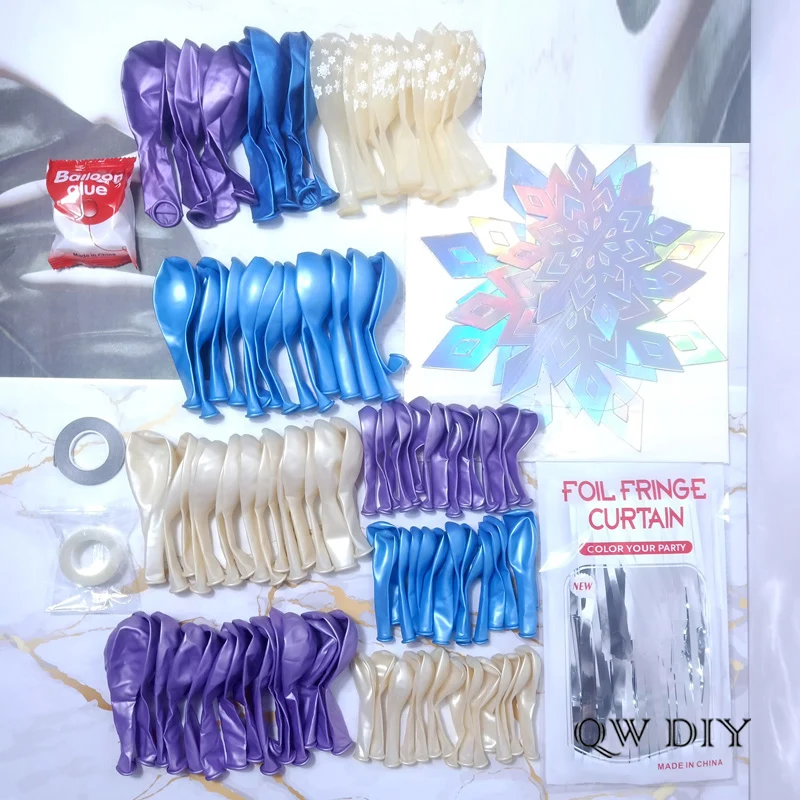 Материал: латексРазмер: 5 дюймов, 10 дюймов, 12 дюймовКоличество: 113 шт.10 шт 12 дюймов принт Снежинка прозрачный шар5 шт. 12 дюймовое металлическое синий шар5 шт. 12 дюймовое металлическое фиолетовый шар15 шт. 10 дюймов кружевные шелковые трусики перламутрового оттенка белый шар15 шт 10 дюймов жемчужно-фиолетовый шар15 шт. 10 дюймов кружевные шелковые трусики перламутрового оттенка синий шар15 шт. 5 дюймов кружевные шелковые трусики перламутрового оттенка белый шар15 шт 5 дюймов жемчужно-фиолетовый шар15 шт. 5 дюймов кружевные шелковые трусики перламутрового оттенка синий шар1 рулон 5 м шаровой цепи1 рулон 100 шт клеевых точек1 рулон лазерной серебряной ленты 10 м