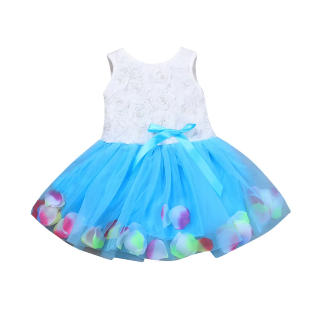 Платье для девочек 2 года 3 года Брендовые платья из тюля с бантом и юбкой-пачкой в виде лепестков платье для маленьких девочек с цветочным рисунком без рукавов