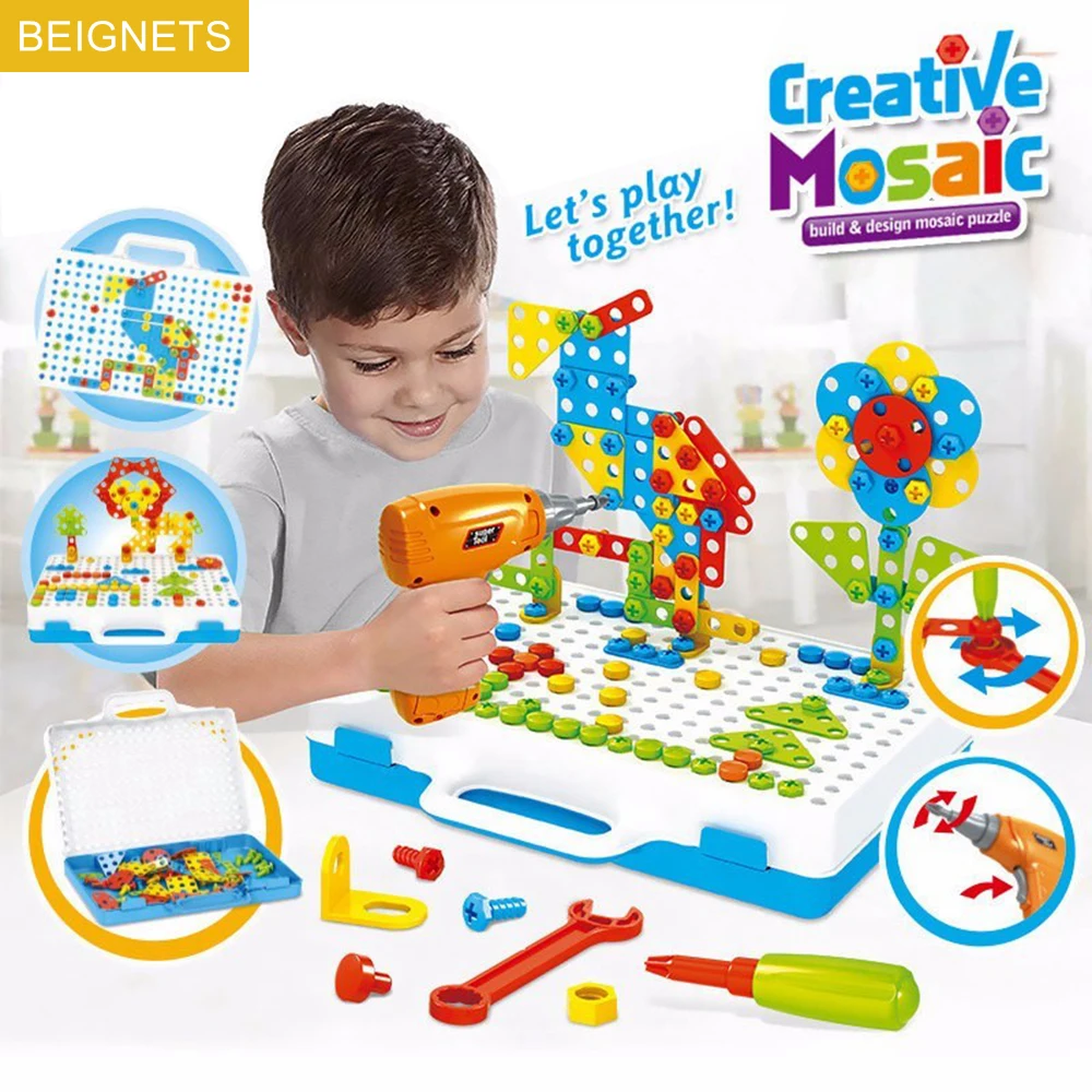 Детский набор инструментов с имитацией электрического сверления, сверлильный винт, 3D конструктор сделай сам, строительные блоки, пазлы, обучающие игрушки