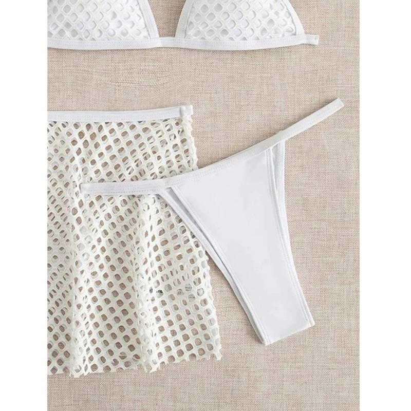 Белый купальник с вырезами, женский сексуальный комплект бикини, треугольный микро купальник, костюм из 3 предметов, короткая юбка, купальный костюм с низкой талией, бикини