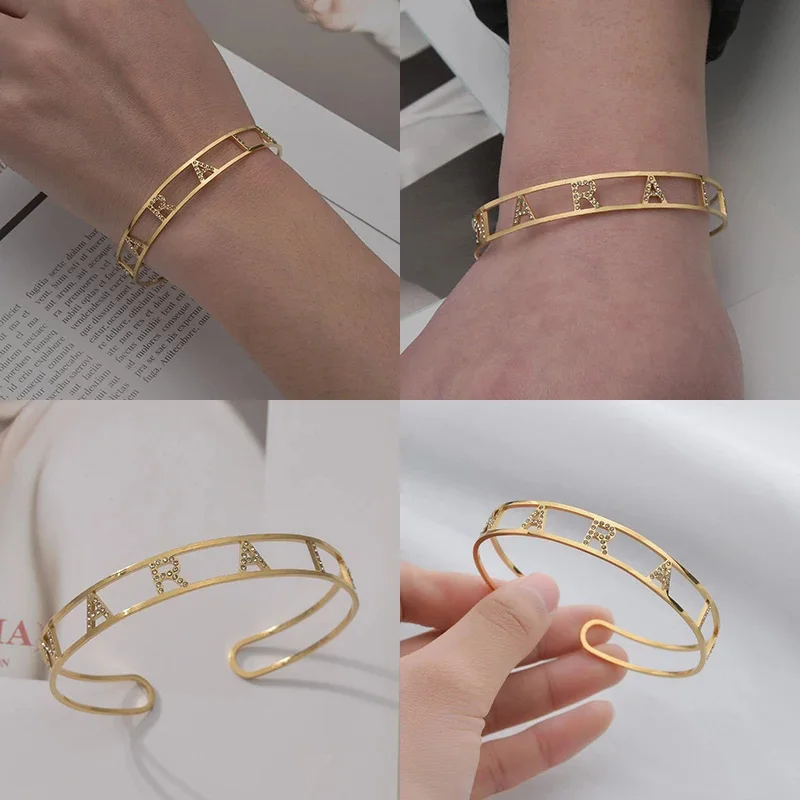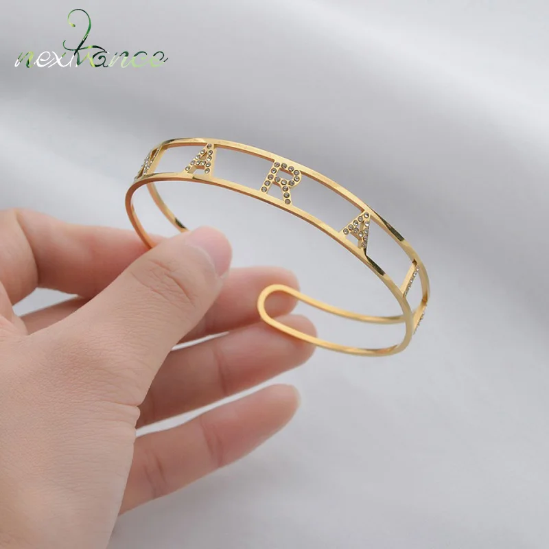 Nextvance Новый Нержавеющая сталь пользовательское имя Регулируемый Циркон золотой браслет персонализированные Стразы ювелирные женские браслеты подарок