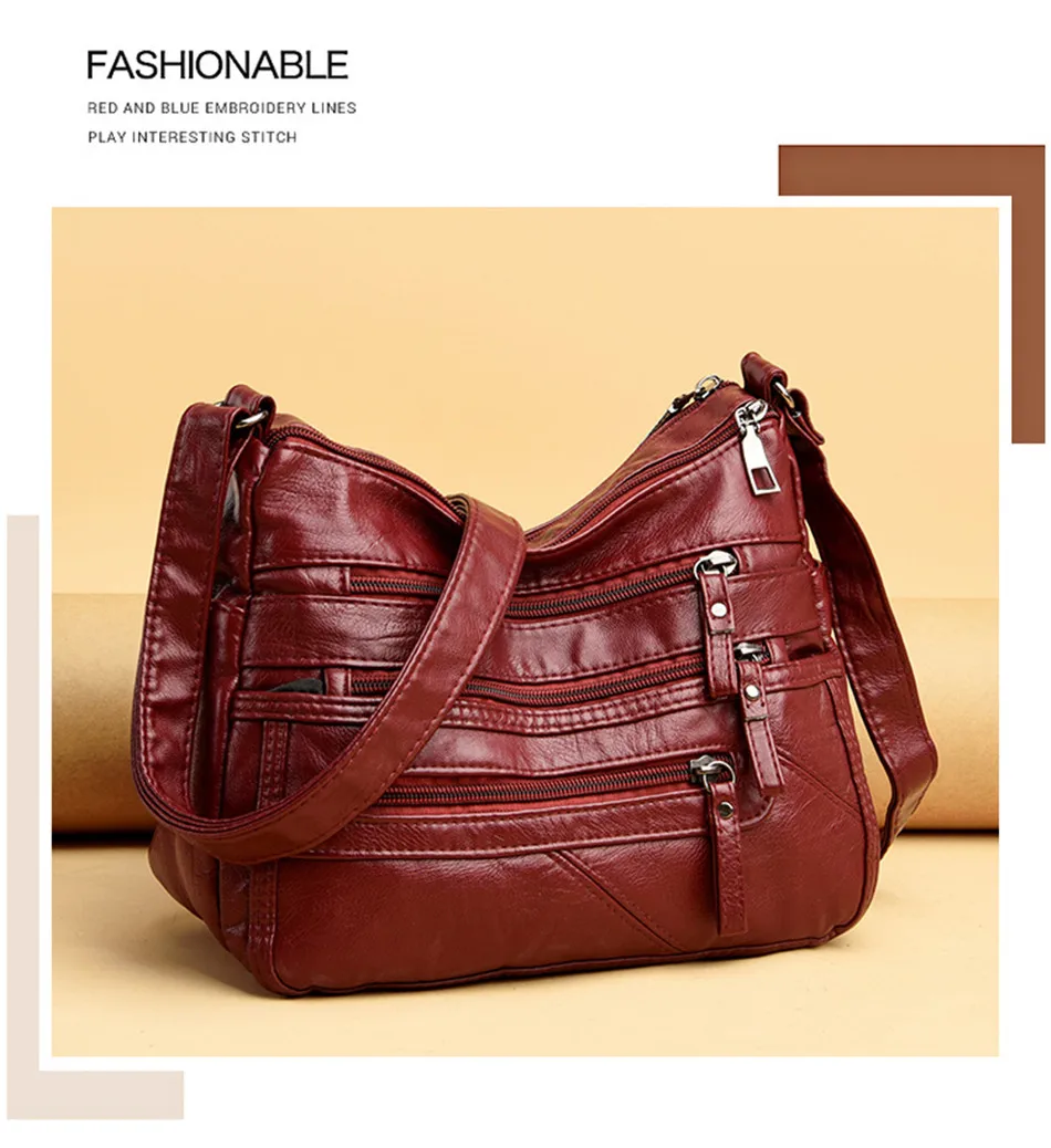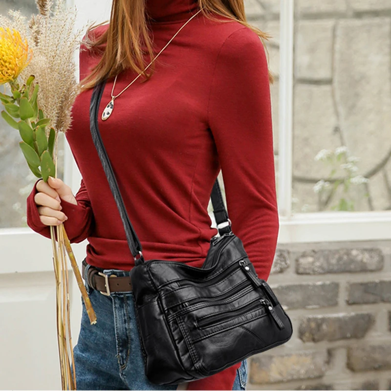 Высококачественная женская сумка через плечо из мягкой кожи, многос...
