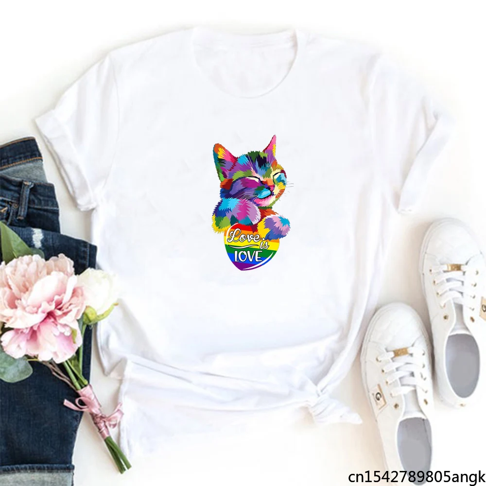 Женская футболка с круглым вырезом, забавная Повседневная футболка с акварельным принтом в виде милого кота, уличная одежда