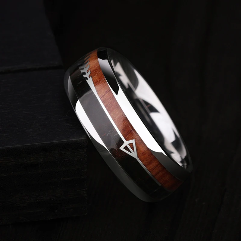 Мужское обручальное кольцо So men, вольфрамовое кольцо 8 мм с дизайном из натурального дерева и стрел, Т-образное обручальное кольцо, размер 6-13 в наличии