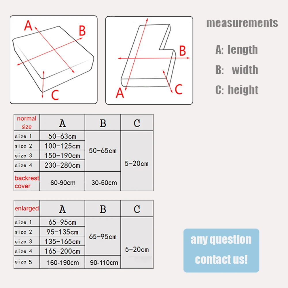 Размер:Обычный размер-1: длина 50-63 см ширина 50-65 см Высота 5-20 смНормальный размер-2: длина 100-125 см ширина 50-65 см Высота 5-20 смНормальный размер-3: длина 150-190 см ширина 50-65 см Высота 5-20 смНормальный размер-4: Длина 230-280 см ширина 50-65 см Высота 5-20 смРазмер для увеличения-1: Длина 65-95 см ширина 65-95 см Высота 5-20 смРазмер для увеличения-2: длина 95-135 см ширина 65-95 см Высота 5-20 смРазмер для увеличения-3: длина 135-165 см ширина 65-95 см Высота 5-20 смРазмер для увеличения-4: длина 165-200 см ширина 65-95 см Высота 5-20 смКрышка спинки: Длина 60-90 см ширина 30-50 см Высота 5-20 смУвеличить размер-5: длина 160-190 см ширина 90-110 см Высота 5-20 смИспользование:Для сиденья дивана, крышки подлокотника дивана, протектора мебели и т. Д.Шикарный чехол для дивана:1. Адаптируйте свой диван очень хорошо, растягивается, удобно. 2. Теплые хлопковые чехлы на ощупь и очень классные. 3. Подходит так хорошо. Оставайтесь идеальными. Покупайте больше, чем обычно. 4. Легко моется и не прилипает.