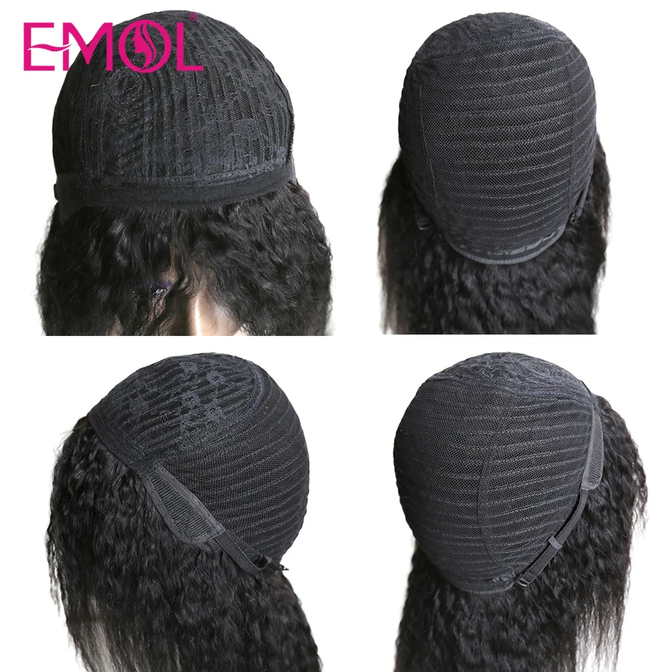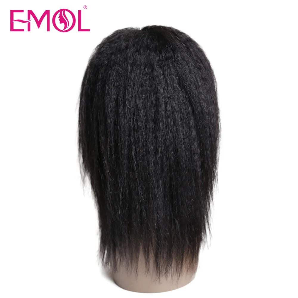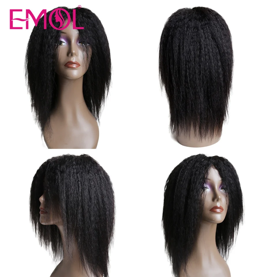 EMOL короткие курчавые прямые человеческие волосы парики для женщин Yaki человеческие волосы безклеевые полностью машинное изготовление дешевые человеческие волосы парики 10-18 дюймов
