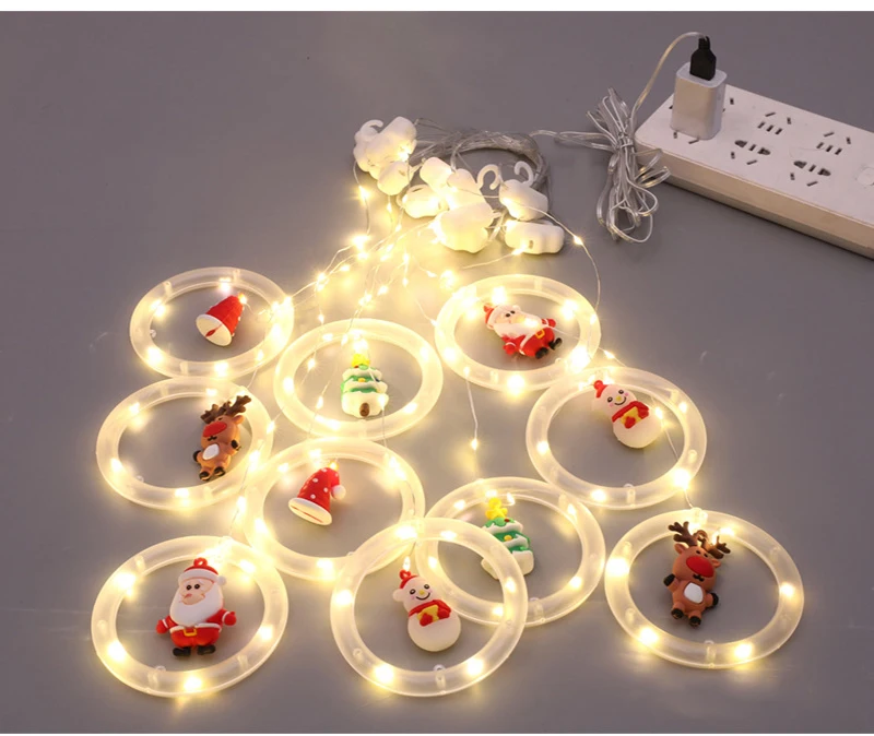 Рождественская гирлянда с Санта-Клаусом, украшение для окна, светодиодные теплые белые гирлянды для помещений и улицы, украшение для рождества, хэллоуивечерние НКИ