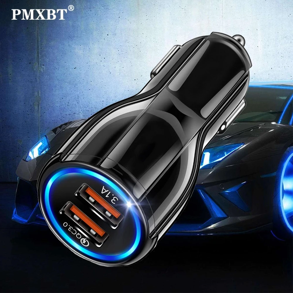 3.1A 5V Dual USB Автомобильное зарядное устройство 2 порта адаптер прикуривателя Быстрая зарядка QC3.0 для iPhone Samsung Xiaomi 11 Redmi быстрое зарядное устройство