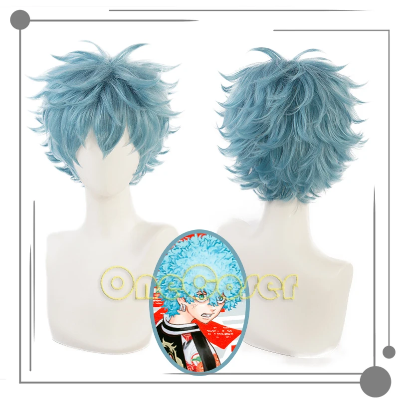 Парик для косплея аниме Токио Мстители суйя Кавата, вьющиеся синие волосы, термостойкие волосы + Бесплатный парик, кепка для вечевечерние на Хэллоуин для мужчин
