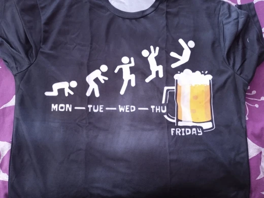 этой фигне цена 100 рублей от силы , на ощупь галимая синтетика по виду тоже , на обычную футболку не смахивает , на фото у продавца она черная ( матовая ) на деле она блестит , очень похожа на чехол от чемодана ( из такой же ткани ) принт с двух сторон (и на спине тоже ) короче даже на работу в такой не пойти , лажа редкостная