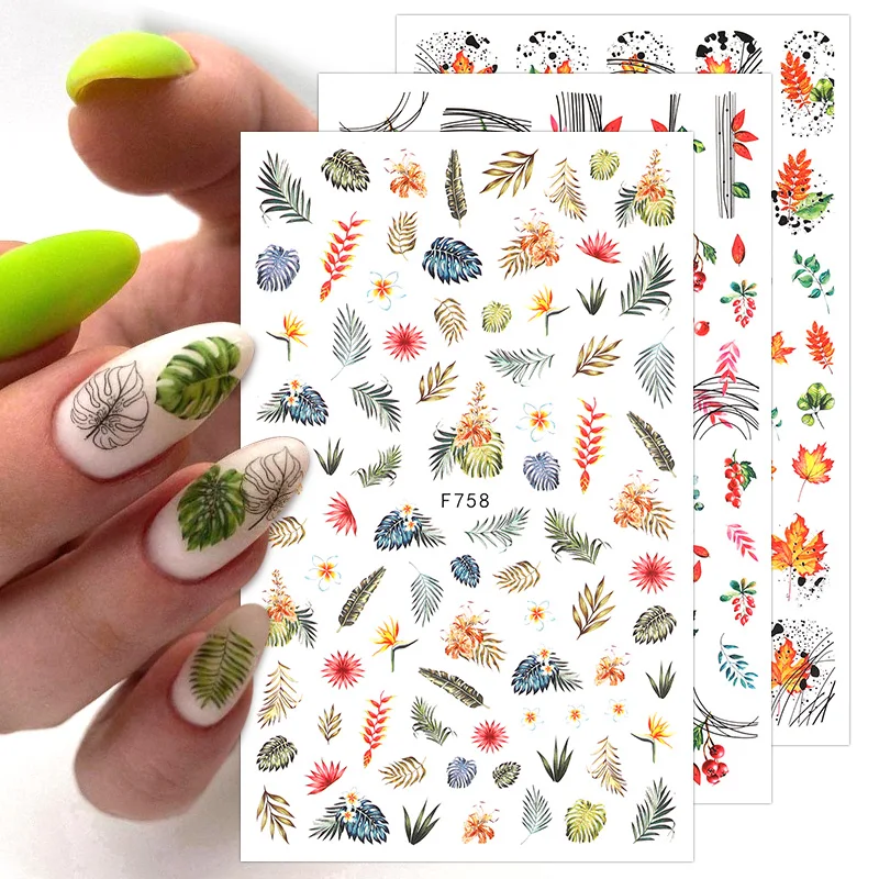 3D наклейки для ногтей, цветы, листья, акварель, абстрактные цветоч...