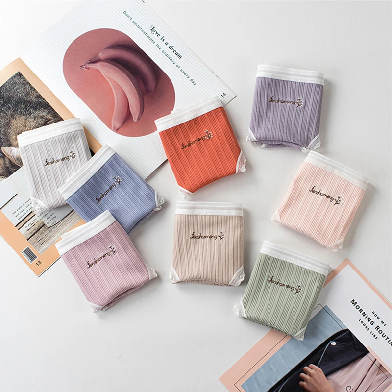 Нижнее белье женское в японском стиле, хлопковые трусы со средней п...