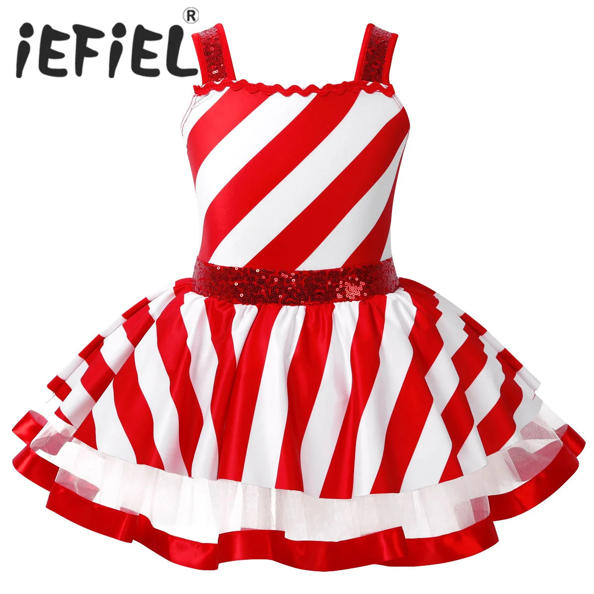 Особенности: Платье изготовлено из полиэстера, с пайетками и сетчатого материала, ручная стирка. Таблица размеров означает возрастные диапазоны для девочек, но они предназначены только для общего ознакомления. Широкие лямки, квадратный вырез украшен риккраком спереди. Разработан с поясом из спандекса с блестками. Трехслойная юбка на талии, верхний слой из полиэстера в полоску, 2 слоя сетки. Со встроенными трусиками. Очаровательная танцевальная одежда для вашей девочки. Подходит для рождества, фигурного катания, катания на коньках, роликовых коньках, выступлений на сцене и т. д.