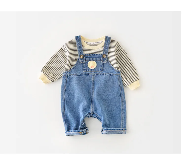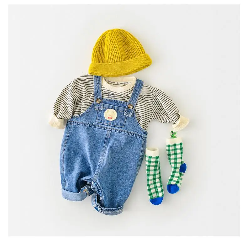 2022 новые осенние детские комбинезоны для девочек, Ins, детские штаны с рисунками для мальчиков 0-24 месяцев, комбинезон для детей, корейские джинсовые комбинезоны для маленьких девочек