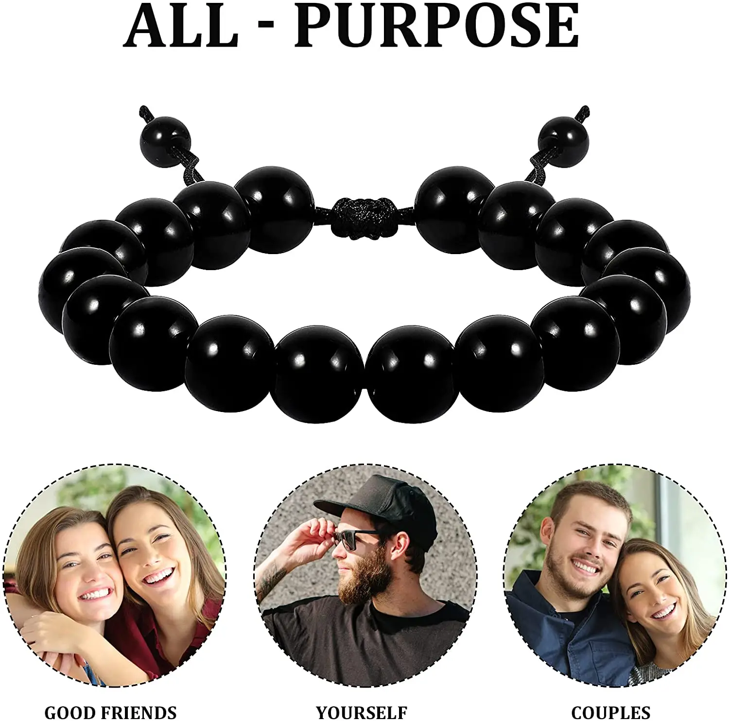 1 шт. Регулируемый обсидиановый каменный браслет 10 мм, изделие для...