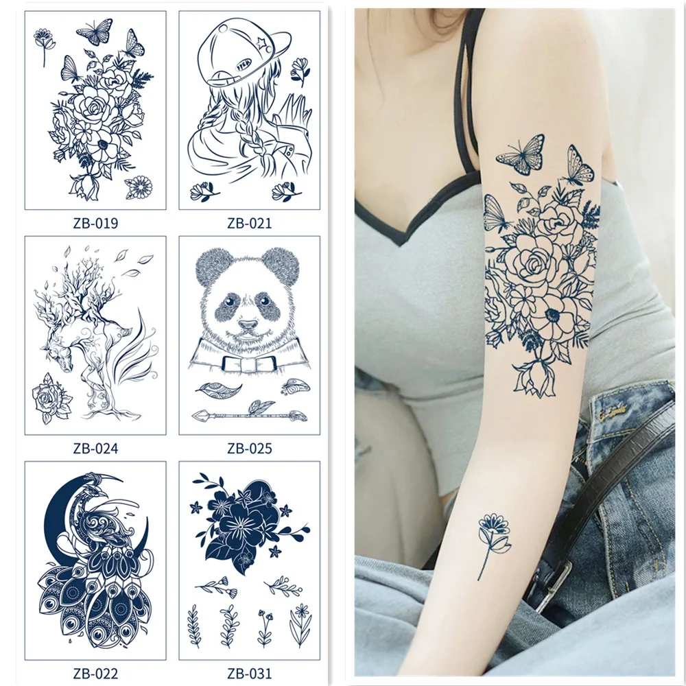 18 видов модных Временных Тату-наклеек с соком для мужчин женский боди-арт Макияж Тотем Бабочка панда цветок тату