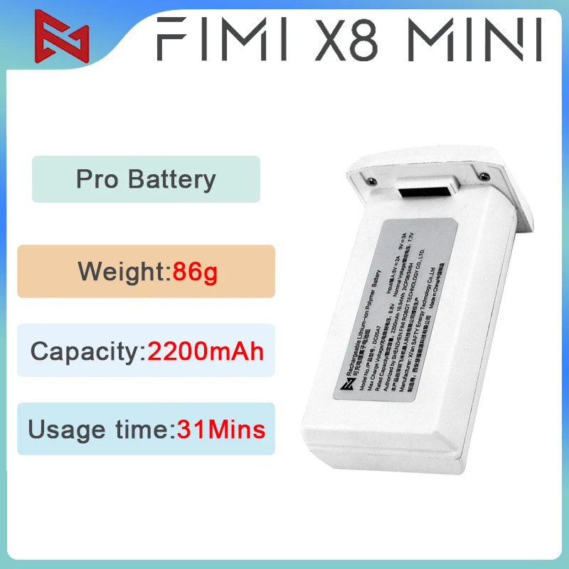 Аккумулятор FIMI X8 Mini Pro Smart 2200 мА ч, интеллектуальный аккумулятор LiPo 2S, оригинальный аккумулятор для дрона Fimi X8 Mini, аксессуары для радиоуправляемого дрона