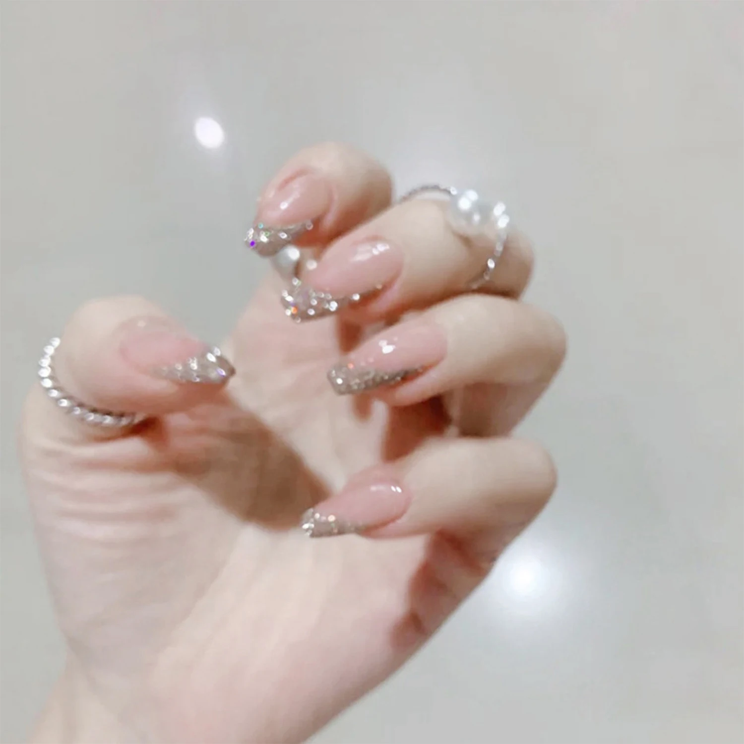 24 шт. блестящие съемные накладные ногти балерины розовые носимые н...