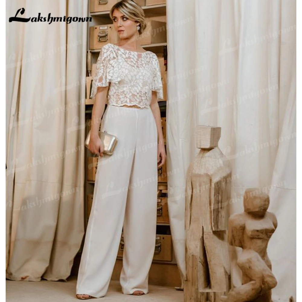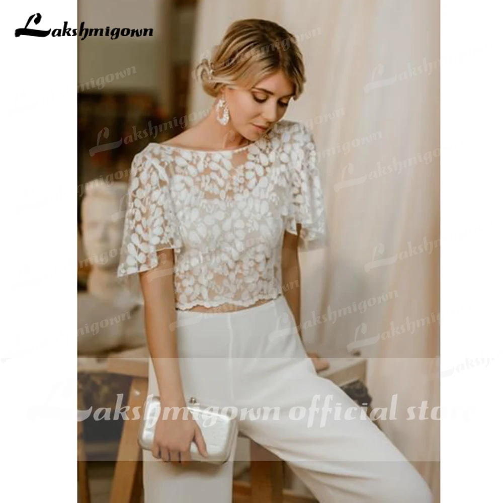 Пикантный костюм из двух предметов, свадебные платья, кружевной Летний комбинезон 2022, наряд, вечерние платья для невесты с открытой спиной