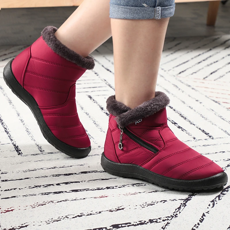 Ботинки женские зимние, из хлопка, на молнии, водонепроницаемые