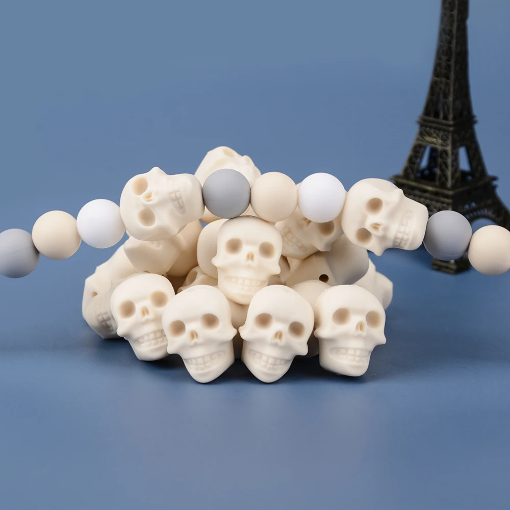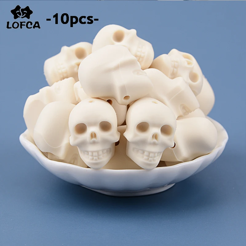10 шт., силиконовые бусины LOFCA в виде черепа без бисфенола А