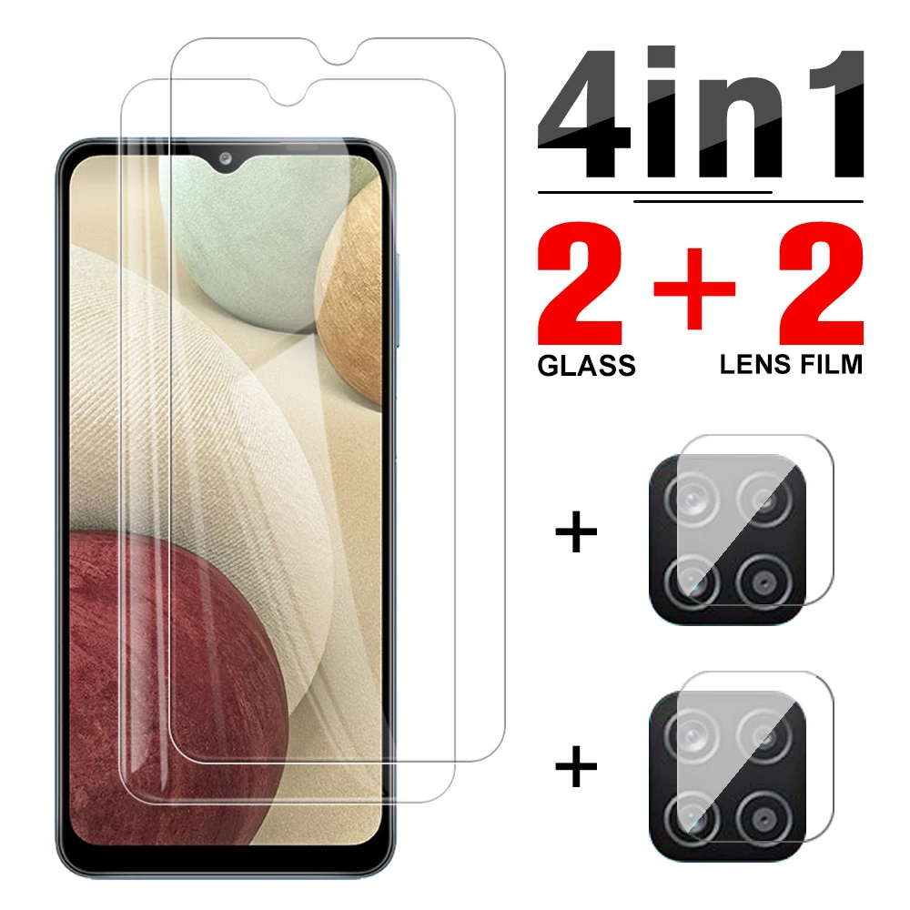 4 в 1 чехол из закаленного стекла для samsung galaxy a12, Защита экрана для samsung a12, a22, a21s, a02s, a21, a02, a03s, защитная пленка для камеры
