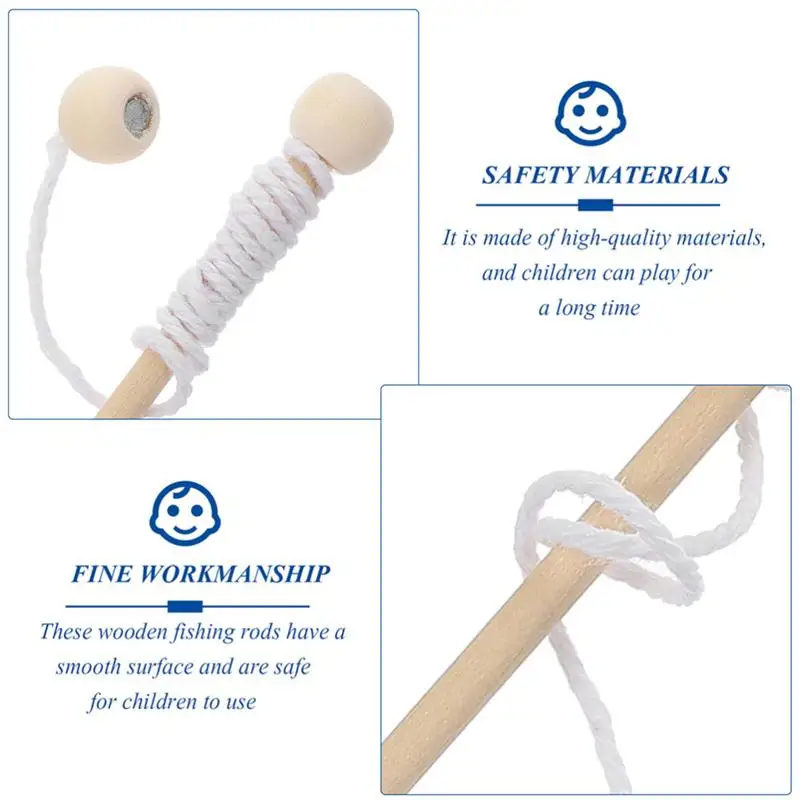 -Эти деревянные удочки имеют гладкую поверхность и безопасны для использования детьми.