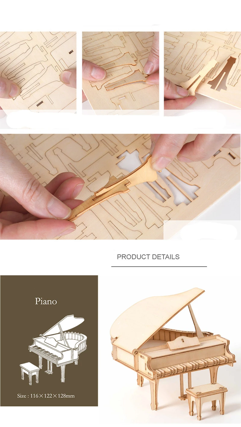 3D Деревянный Пазл сделай сам, биплан, Дрон, часы, автомобиль, игру...