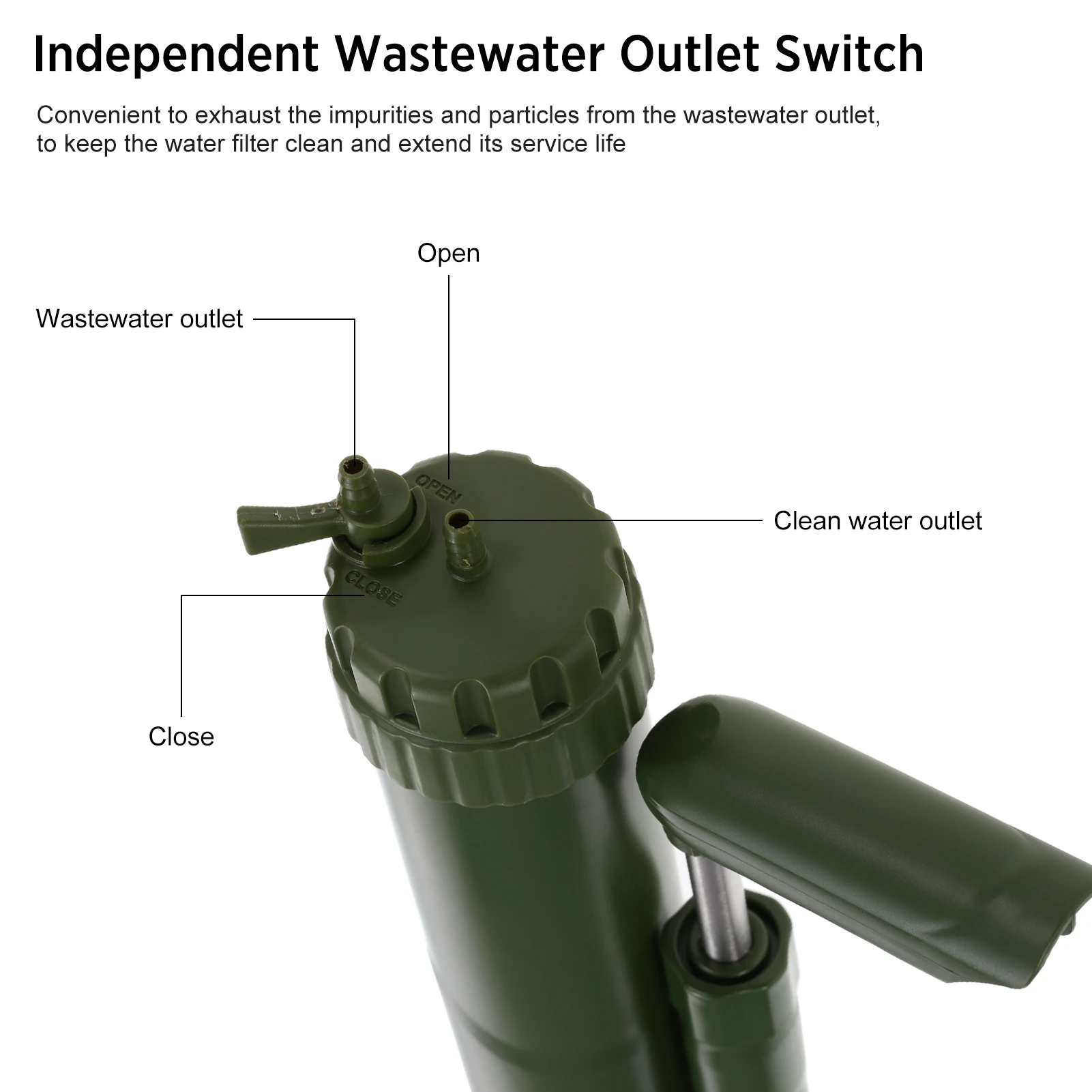 Эта система фильтрации воды удаляет частицы и примеси, уменьшить мутности и очистке, безопасный питьевой воды. Это идеальный выбор для приключений на открытом воздухе, готовности к чрезвычайным условиям, кемпинга, пеших прогулок, альпинизма и т. д. Особенности:Точность полые волокна мембраны UF с 0,01 микрон точность фильтра, удалить 99.9999% мельчайшие частицы и примеси, чтобы улучшить вкус.Не содержат химикатов, 8000 литров в чистоте и безопасности питьевой воды из заводи и потоки.Насос обеспечивает супер быстрая скорость потока 1500 мл в минуту.Переключатель выхода сточных вод помогает разрядить сточные воды и примеси и продлить срок службы фильтра.Поставляется с мешком для удобного хранения и транспортировки.Идеально подходит для приключений на открытом воздухе, готовности к чрезвычайным условиям, кемпинга, пеших прогулок, альпинизма и т. д. Характеристики:Материал: мембрана UF из полого волокна + пластикТочность фильтра: 0,01 микронЕмкость фильтра: 8000 лРасход топлива: 1500 мл/мин.Фильтр для воды Размеры: 28,5*8,5*4,3 см/11,2*3,3 * 1.7inВес изделия: 233 г/8,2 унцийВ общей сложности Вес: 359g/12,7 ozРазмер посылка: 31,5*13,5*6 см/12,4*5,3 * 2.4inПосылка Вес: 450g / 1lb Посылка:1 * фильтр для воды1 * выдавливаемый мешок для воды3 * силиконовый шланг1 * Адаптер для воды1 * сумка для хранения