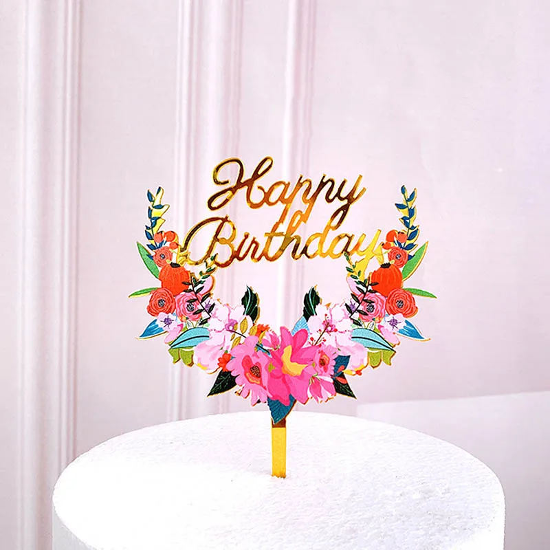 1 шт. цветные цветы, топпер для торта С Днем Рождения золотистые, а...