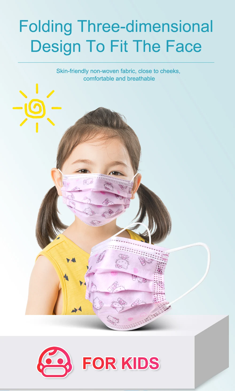 Одноразовые Детские маски 10-200 шт., Детские маски, розовые Мультя...