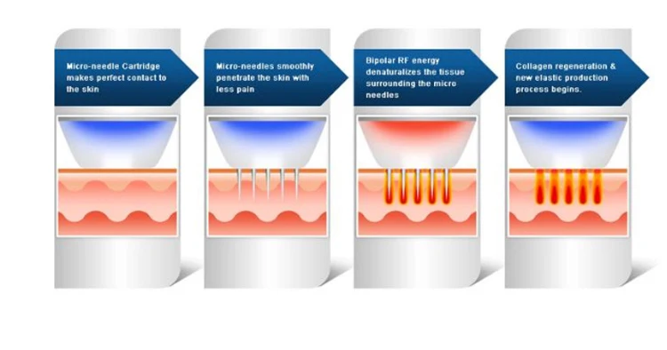 Фракционная RF игла Системы через Особенный дизайн много фракционный игл указывает Высокая скорость цифровой motorcontrols заказ через эпидермис и Дерма с точностью до контроля глубины 0,25-3 мм, снова к концу решетки иглы выпуск RF, стимулирует коллаген и эластичной ткани, И является Эпидермальный слой безопасен, RF энергия может хорошо проникать в дерму, стимулирует гиперплазию белка коллагена, не только лучший способ улучшить шрамы, но также длительное затягивание морщин кожи привело к хорошему Метод.