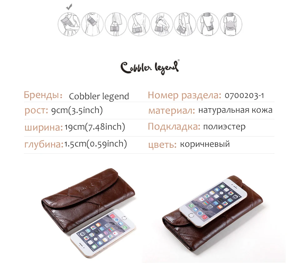 Винтажный кошелек Cobbler Legend, Длинный кошелек унисекс из натуральной кожи, женский клатч, кошелек с застежкой, женская сумка для телефона, женские сумки для карт