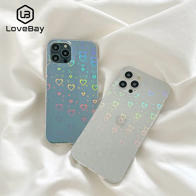 Роскошный градиентный лазерный чехол для телефона с любовным сердцем для iPhone 13 12 11 Pro Max XS Max XR X 7 8 Plus SE 2020, прозрачный мягкий чехол-накладка
