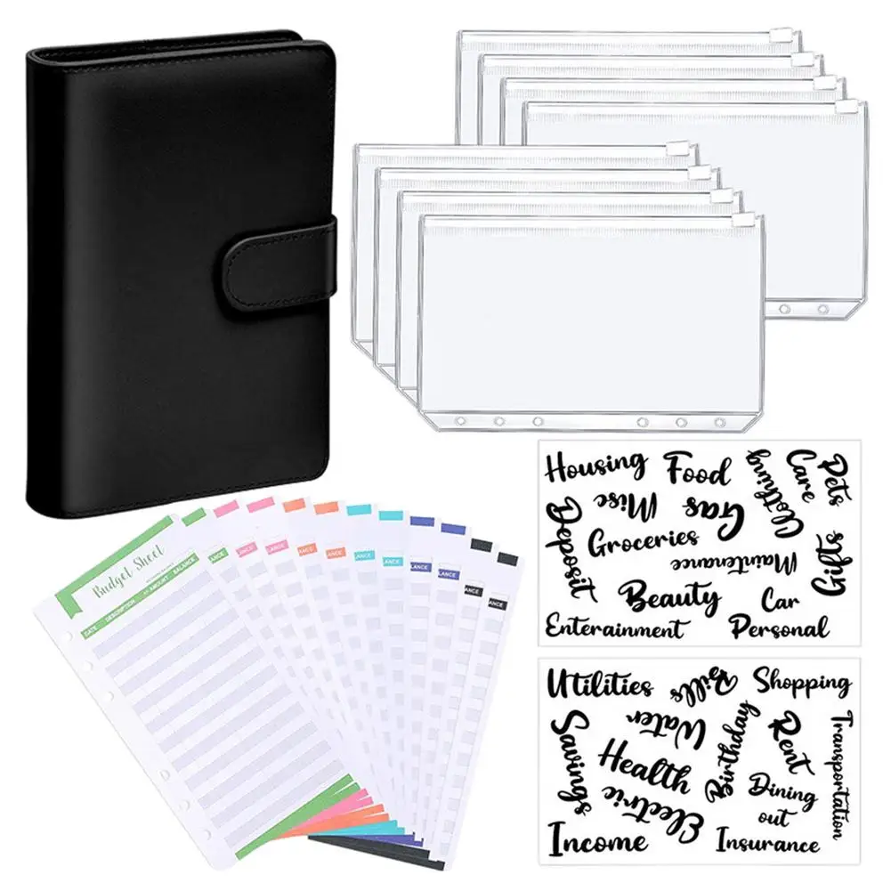 Искусственная кожа блокнот переплет бюджет планировщик организатор переплет Обложка 8 переплет карман 12 расходов бюджет листы 2 буквы стикер этикетка