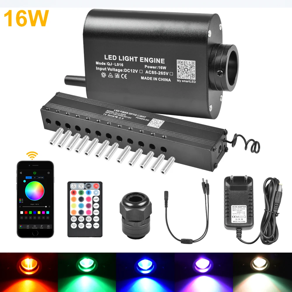 Светодиодный светильник, 16 Вт, двигатель, 12 В, звездное небо, RGBW, источник света с Bluetooth, с эффектом стрельбы метеорита 3 Вт, оптоволоконный