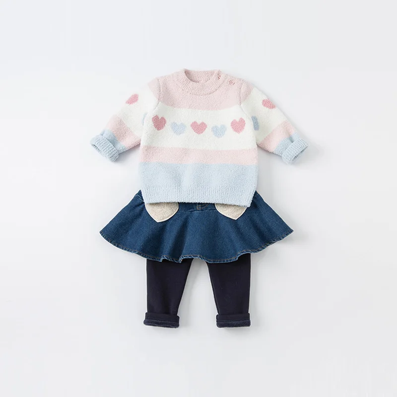 DBZ19830, милый Зимний вязаный свитер в полоску для маленьких девоч...