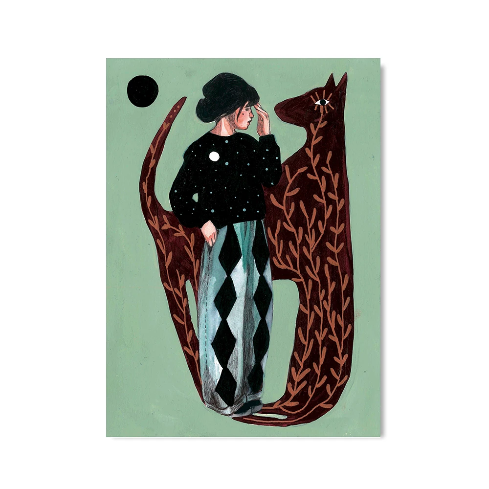 Плакат с рисунком кота, рыбы, Овен, Постер с абстрактным телом, лун...