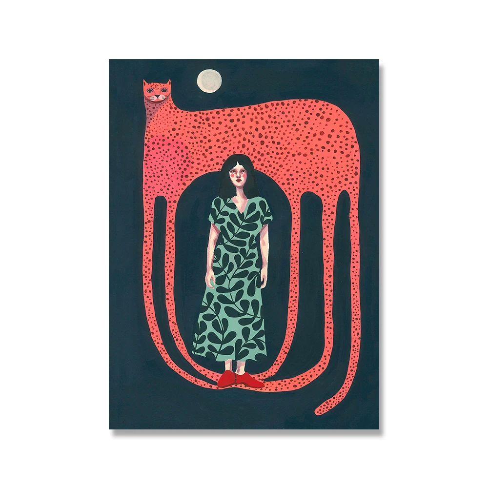 Мультяшная девушка Ягуар разноцветная стена искусство холст картина...