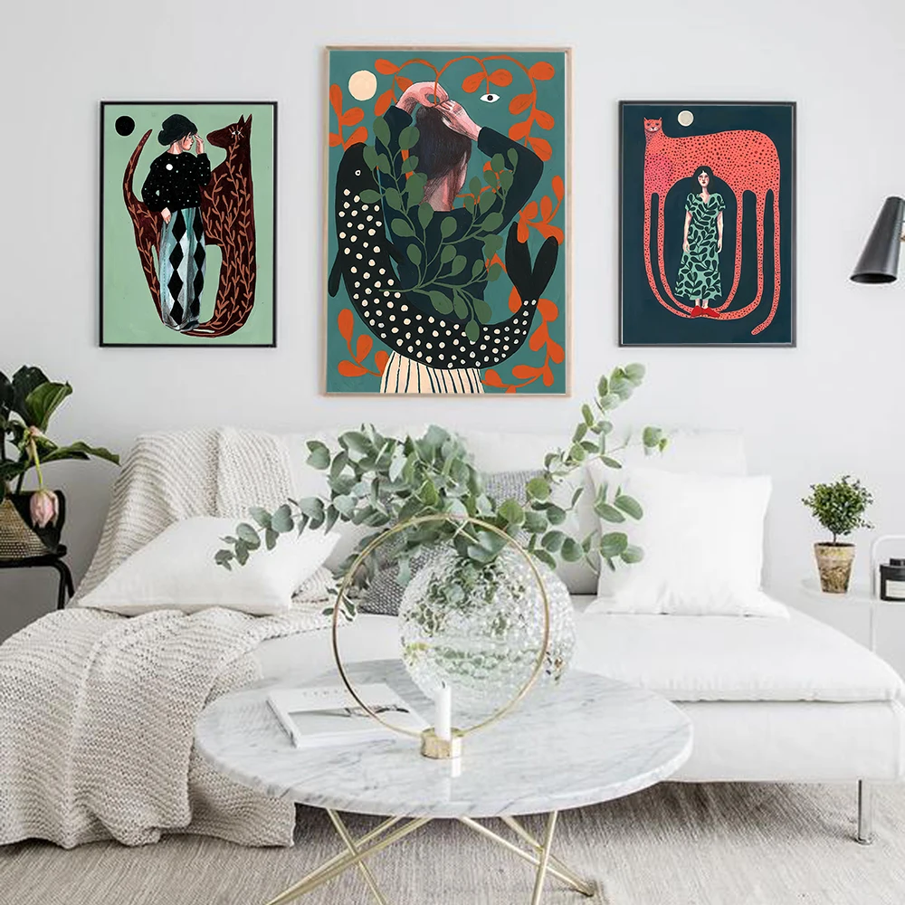 Скандинавские плакаты с принтом иллюстрации женщины рыбы растения и животных Jagua настенная Картина на холсте картина для гостиной домашний декор