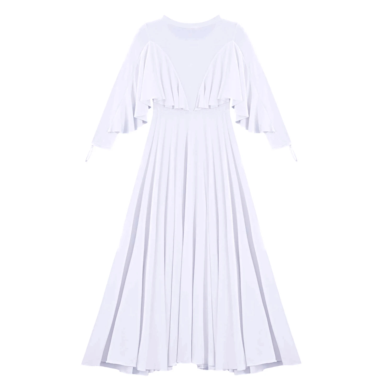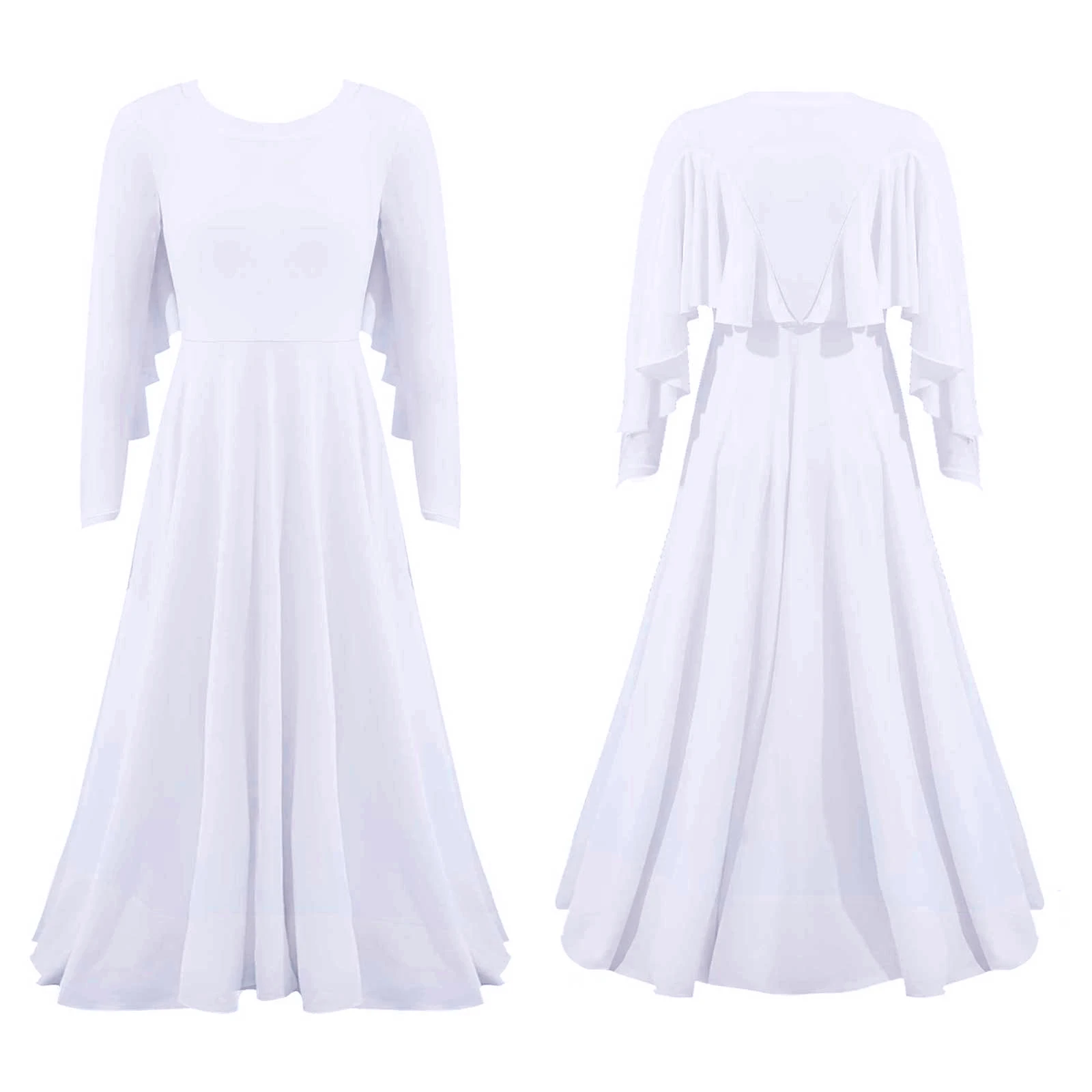 Белое платье для танцев с надписью хвалю, балетная лирическая Одежда для девочек, длинное платье, костюм для поклонения