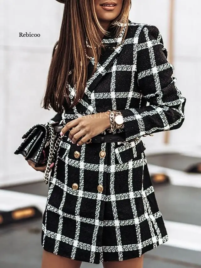 Женский костюм с длинным рукавом, винтажный блейзер в клетку, для д...