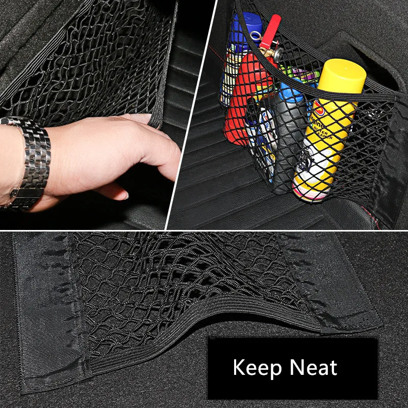 Сетка для заднего сиденья автомобиля, эластичная сетчатая наклейка на заднее сиденье, двухслойная сумка для хранения, карманная клетка, автомобильный Органайзер, сумка на заднее сиденье