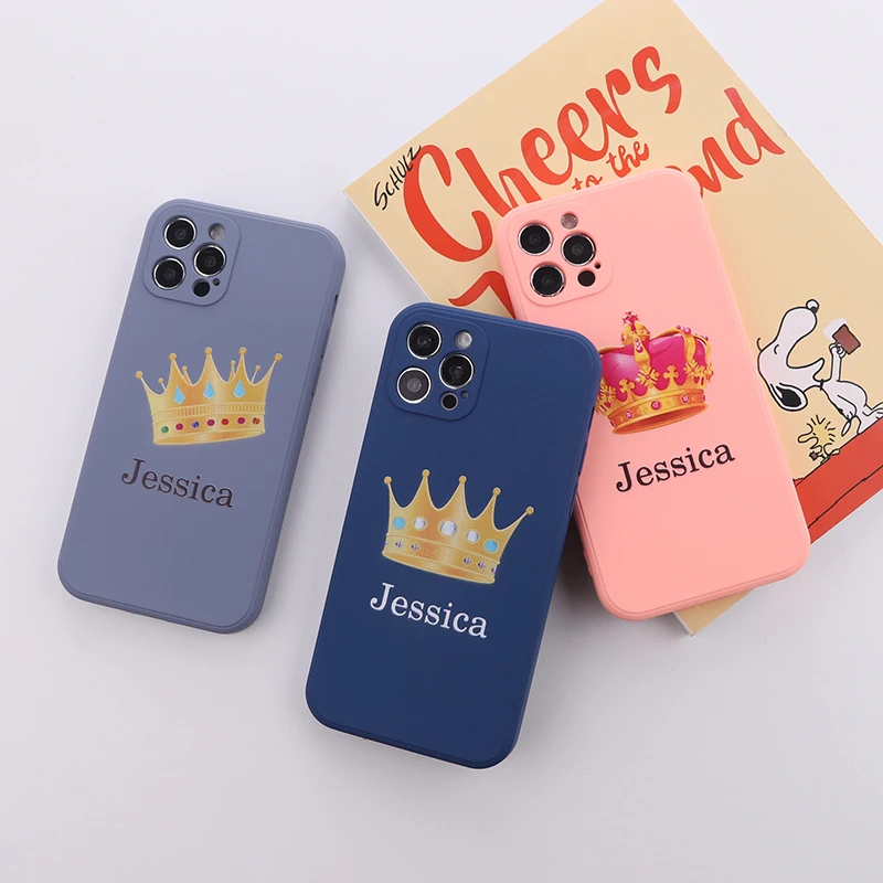 Чехол для телефона с персонализированными инициалами и именем короны для iPhone 11 12 13Pro Max Mini XS XR 7 8Plus, чехол-бампер из жидкого силикона