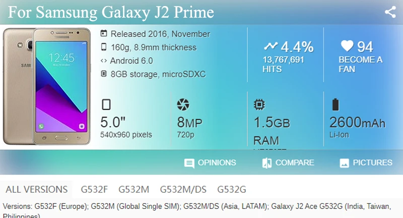 Номер моделиJ2 Prime G532 SM-G532 SM-G532F G532F