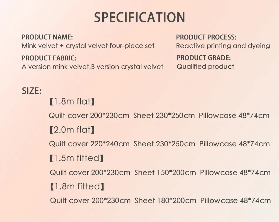 Features 2Mink velvet fabric, soft and breathable, delicate