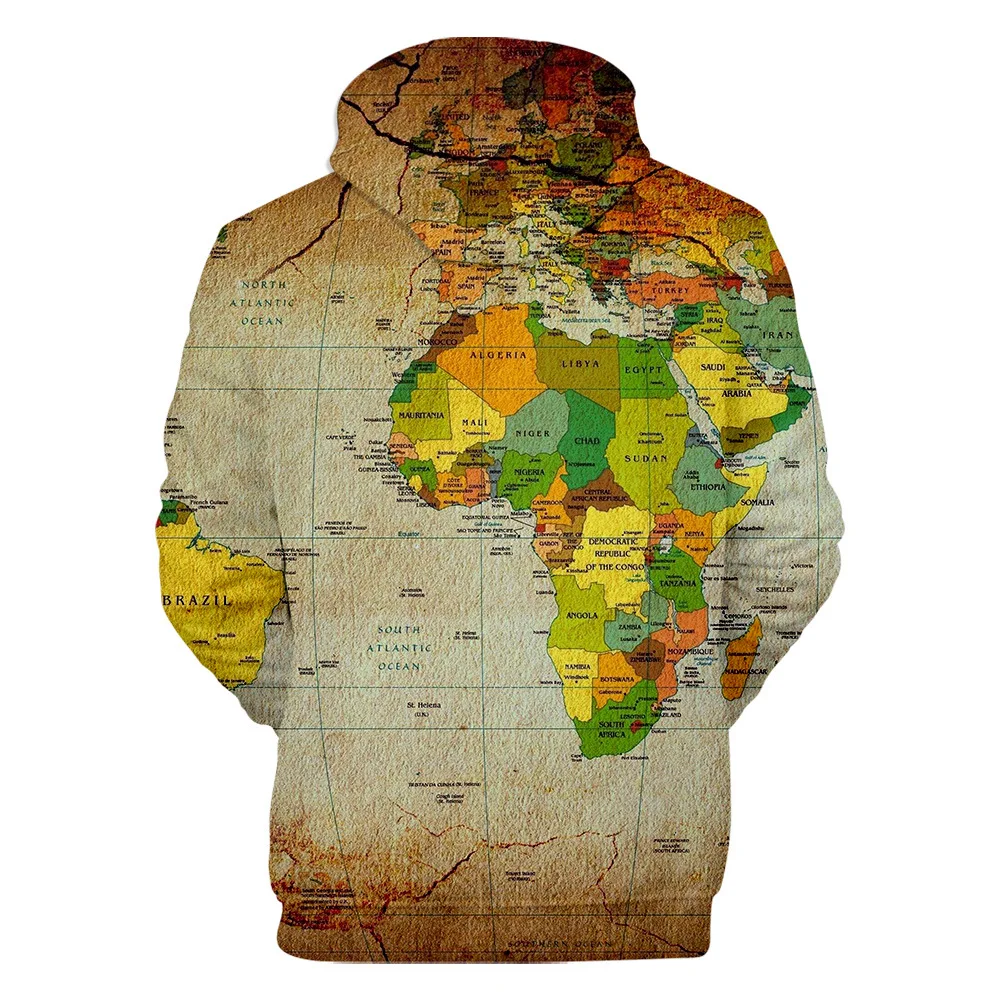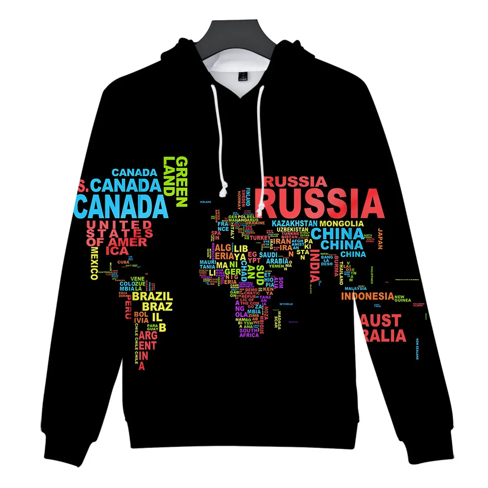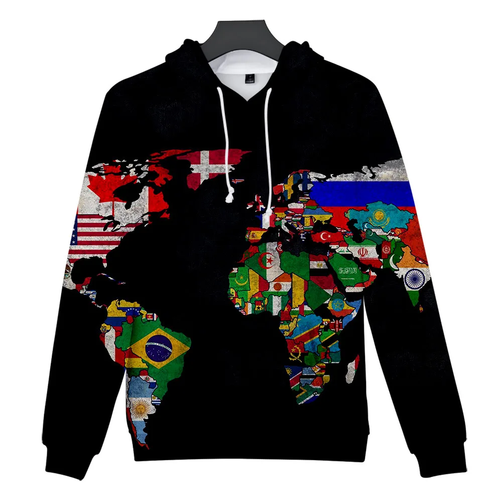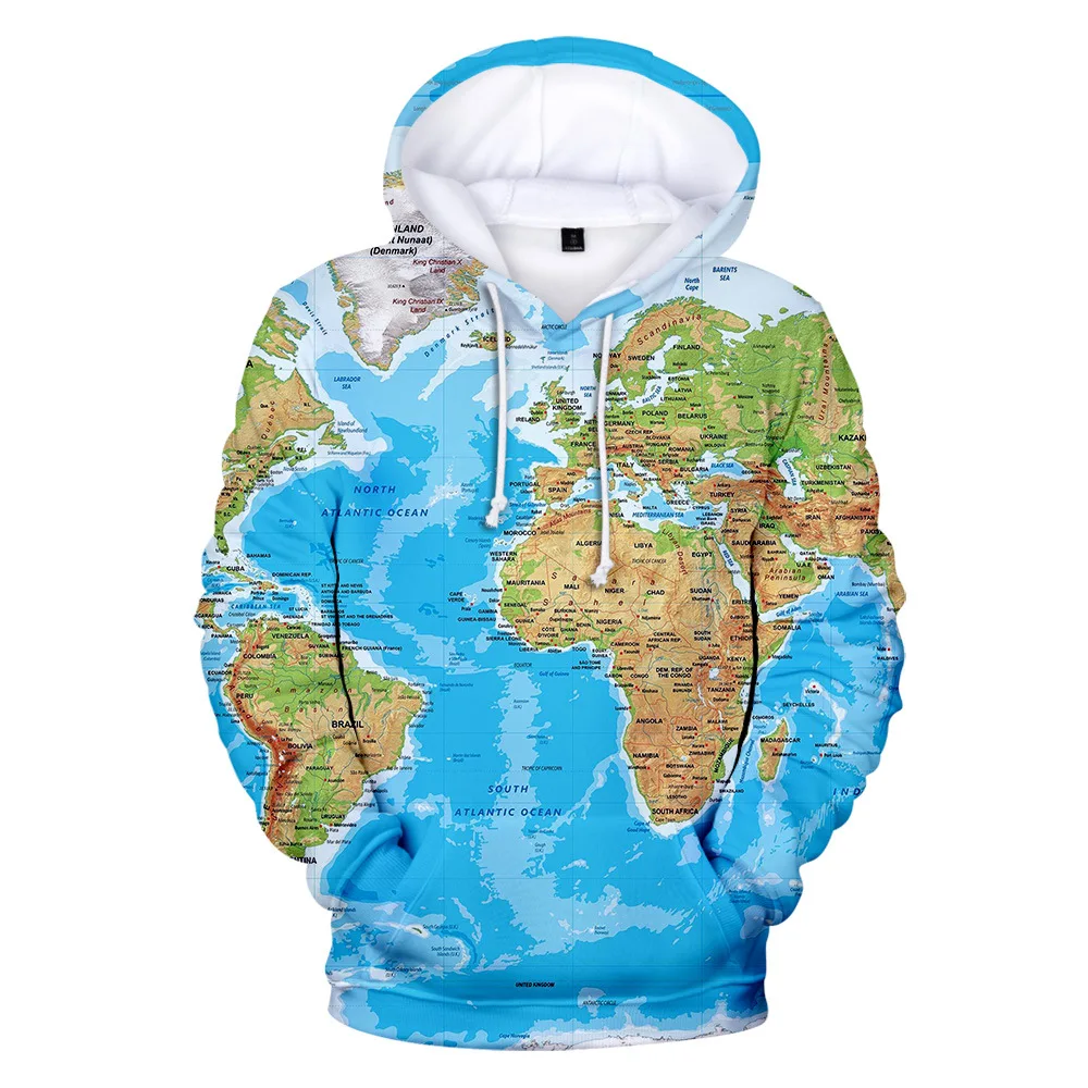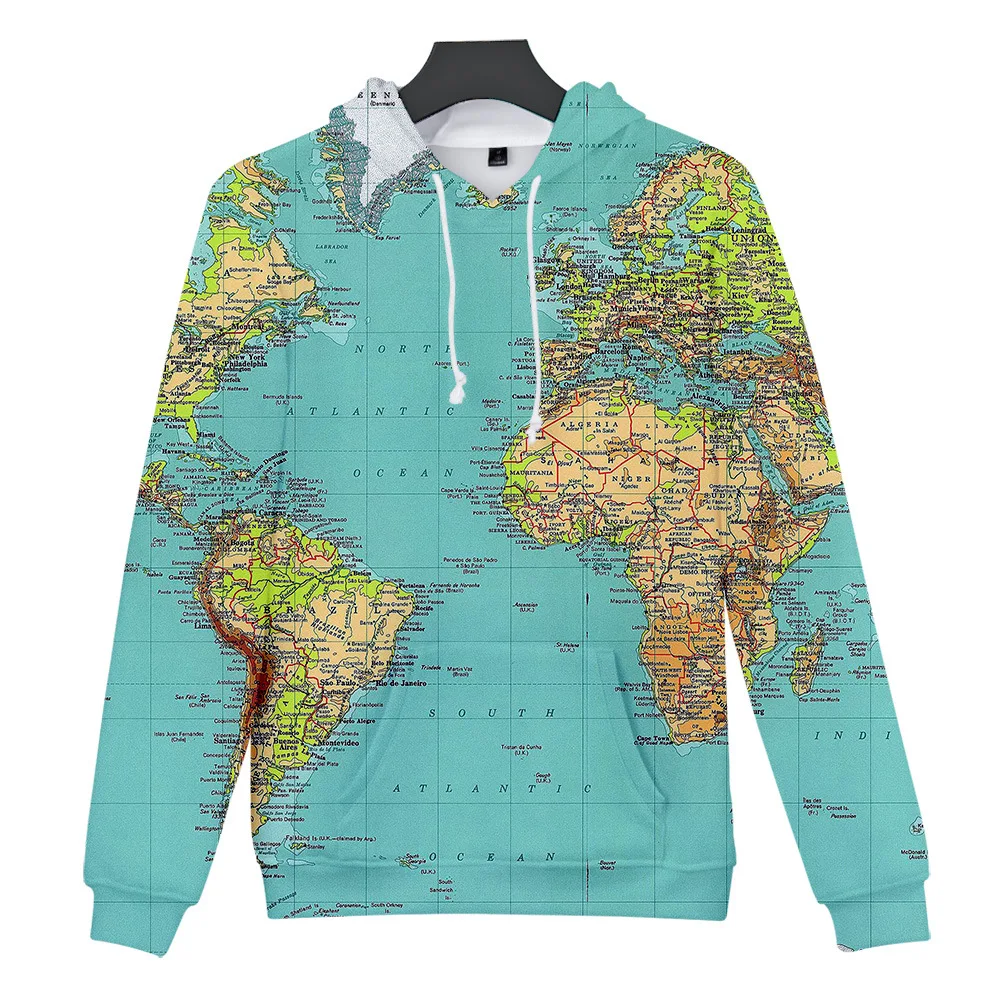 Новинка 2021, толстовки с 3D принтом карты мира для мужчин и женщин, пуловер, уличная одежда с капюшоном, свитшоты в стиле хип-хоп для мальчиков и девочек, повседневные худи для косплея