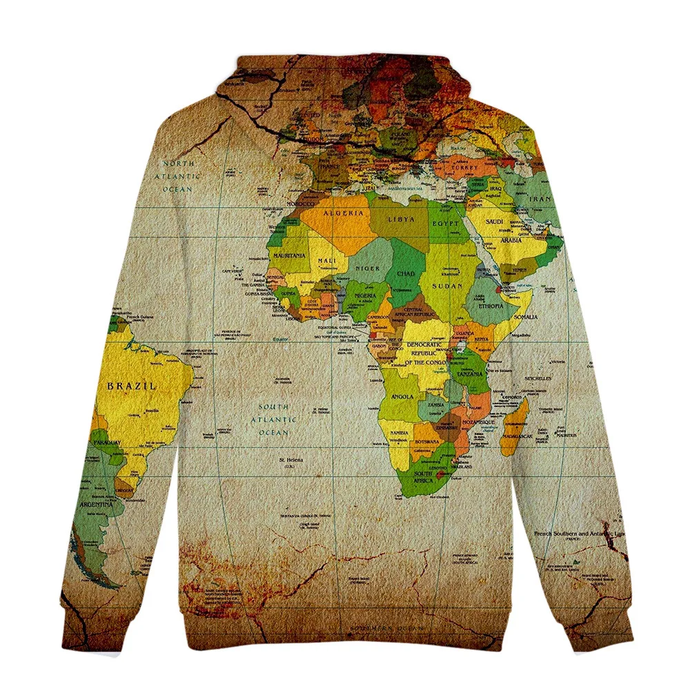 Толстовка МужскаяЖенская с 3D-принтом карты мира, Модный свитшот в ...