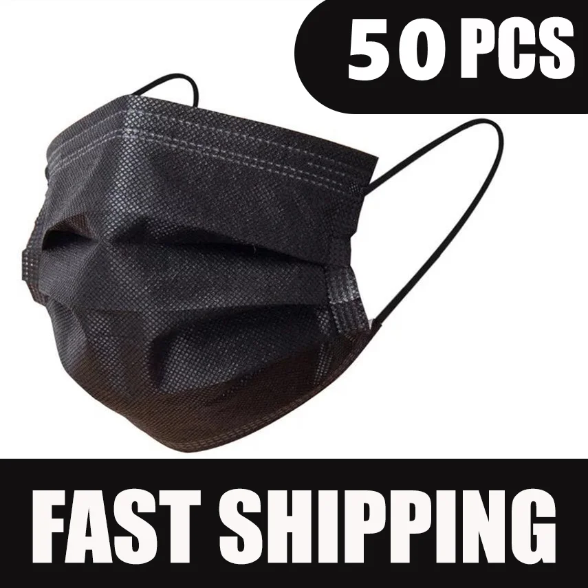Черный Одноразовый нетканый 3-х слойная маска для лица 10/50/100 шт дышащая маска с эластичным Earband дышащие взрослые маска для лица